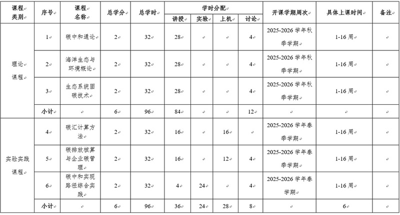 (1)本微专业修读总学分要求为12学分,学生一般须在1年之内、至多2年内完成修读。学生修读完成并考核通过所有课程,经开设单位海洋科学与生态环境学院审核后,报教务处审定并颁发碳中和技术微专业修读毕业证明。