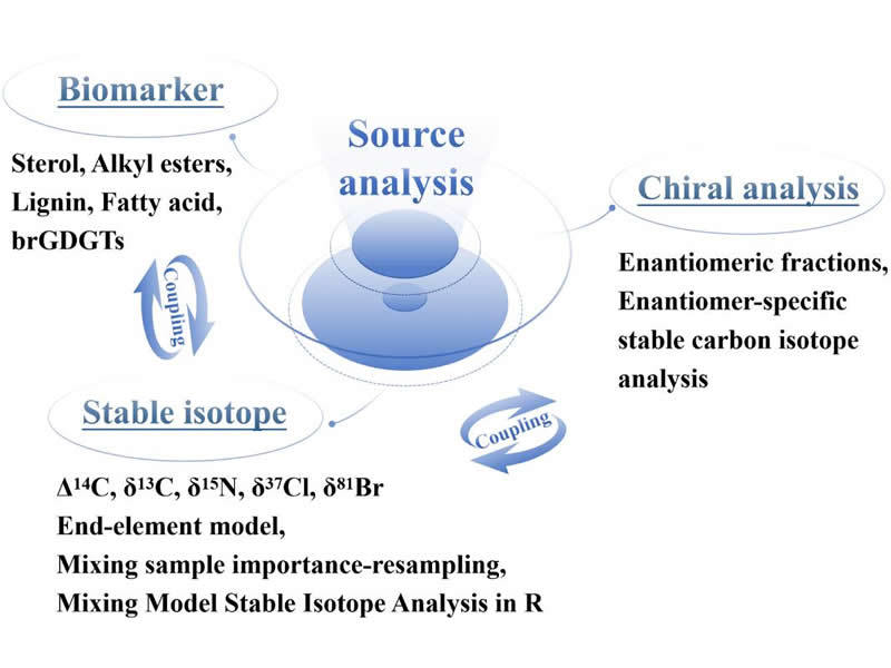通过结合不同的分析方法,包括使用碳、氮、氯和溴的同位素组成,分析甾醇、脂肪酸和甘油二醚等生物标志物的组成和手性化合物的对映体比例和稳定同位素组成(图7),可以有效追踪深渊海沟环境中有机污染物的来源和传输路径。